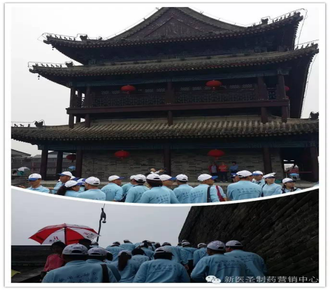 冒着淅淅沥沥的秋雨,我们一步步登上这饱经风霜的古城墙,感受着它的沧桑、它的厚重、它的文化……看着人们三两成群的从事着各项健身活动,让我们更加体会到医药人的那份责任,元动力的那份担当——“运动无极限,健康每一天。服用元动力,健康添活力。”